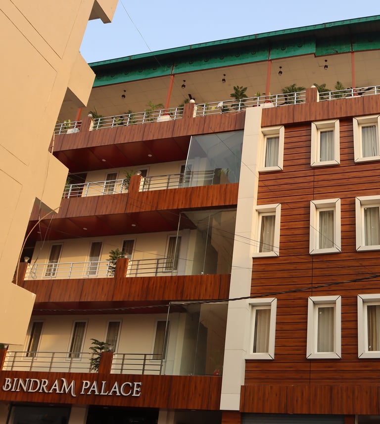 At Hotel Bindram Palace, guests also enjoy our rooftop multicuisine restaurant, small banquet space (ideal for gatherings of 50–60 guests) and catering facilities — all supported by secure on-site parking. Whether you’re visiting for leisure, an event, or a business trip, we’re committed to making your stay comfortable and memorable.